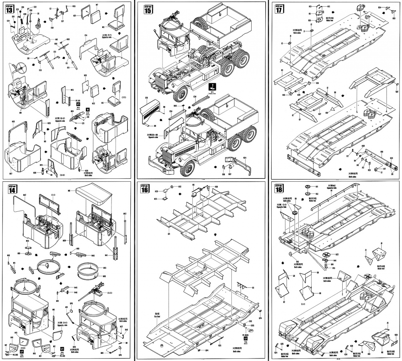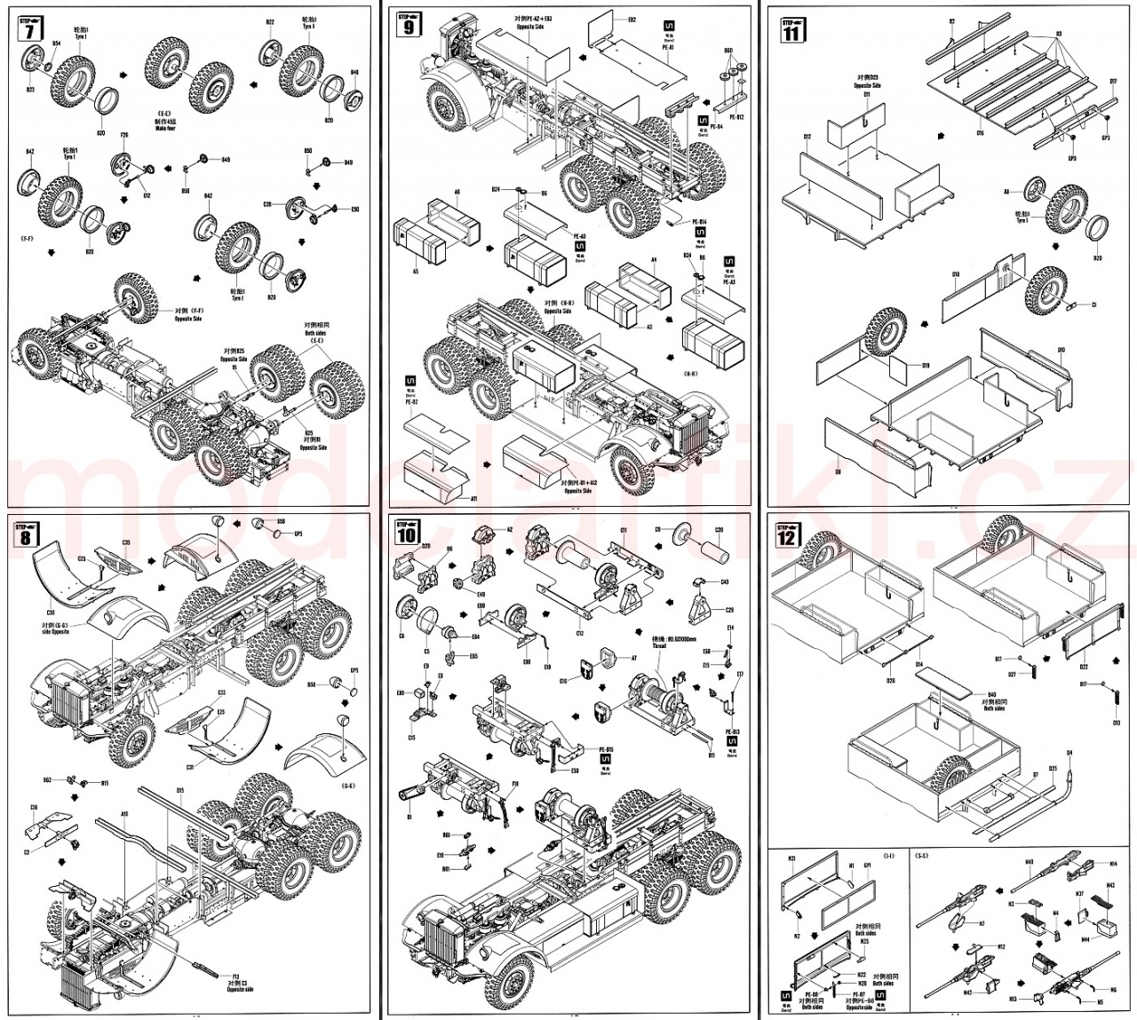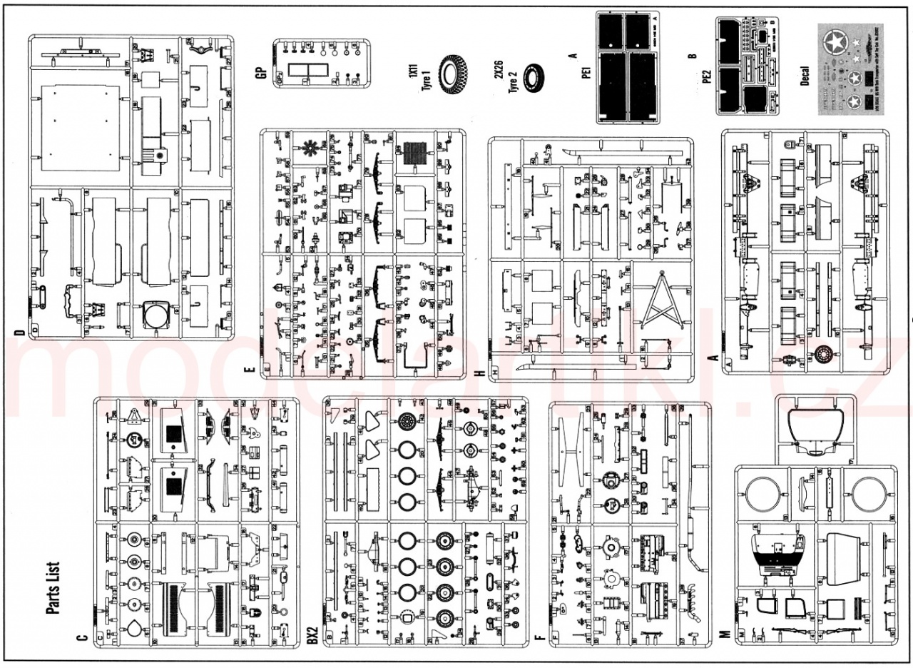 Stavebnice obsahuje plastové výlisky (tahač a přívěs), kovové leptané díly, gumové pneu, obtisky a obrázkový stavební návod. Neobsahuje lepidlo ani barvy. Sestavuje se lepením. Doporučený věk: 14+.