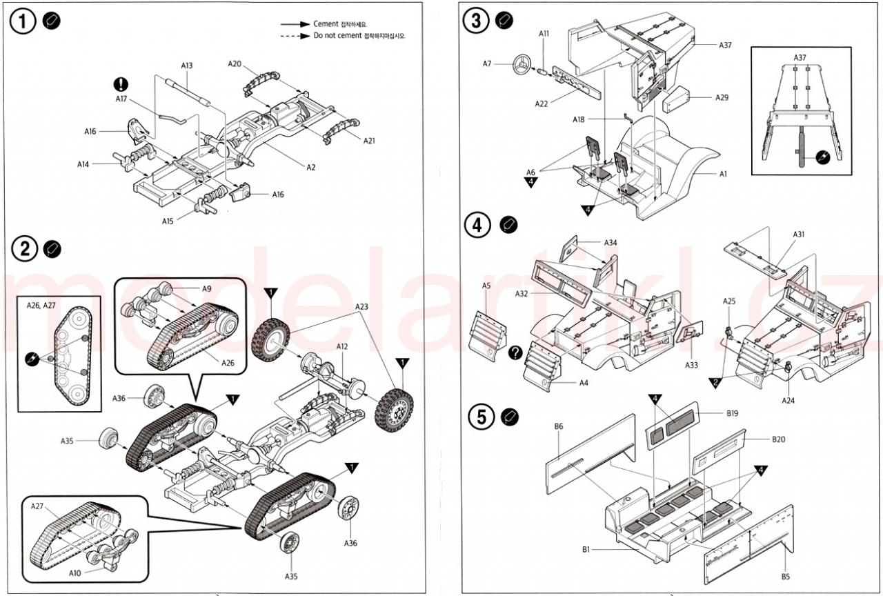 Stavebnice obsahuje plastové výlisky, obtisky a obrázkový stavební návod. Neobsahuje lepidlo ani barvy. Sestavuje se lepením. Doporučený věk: 14+.