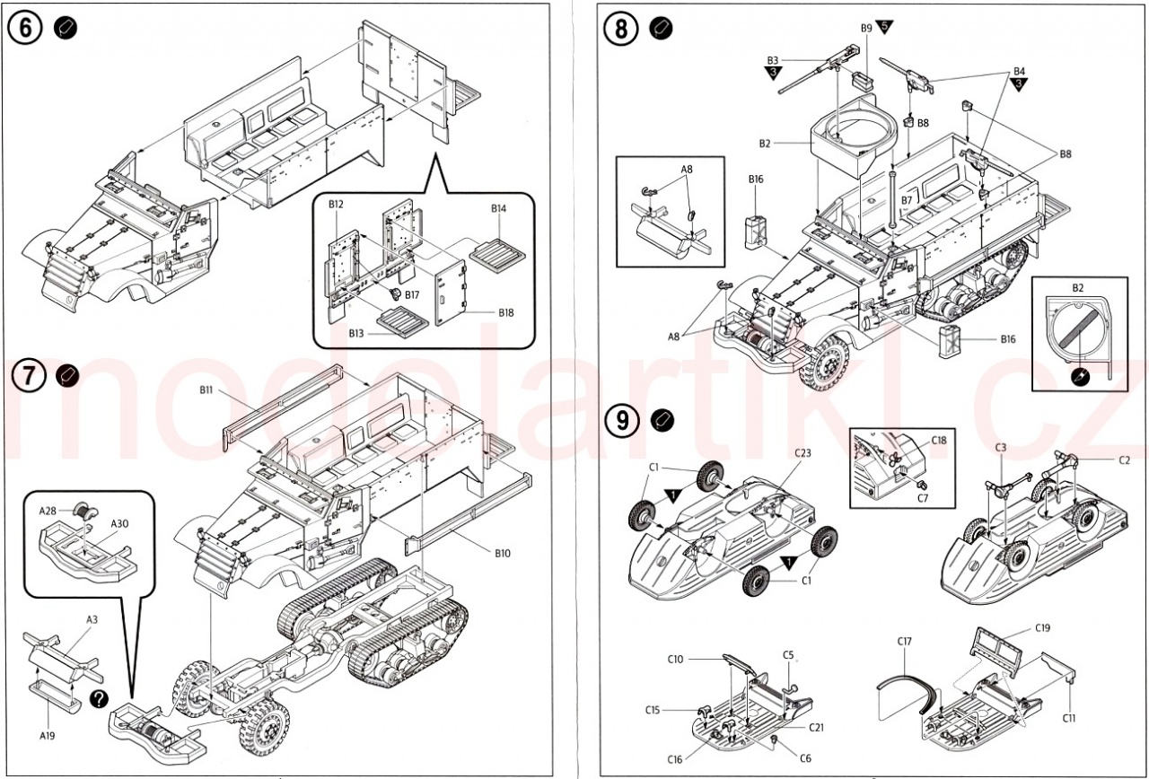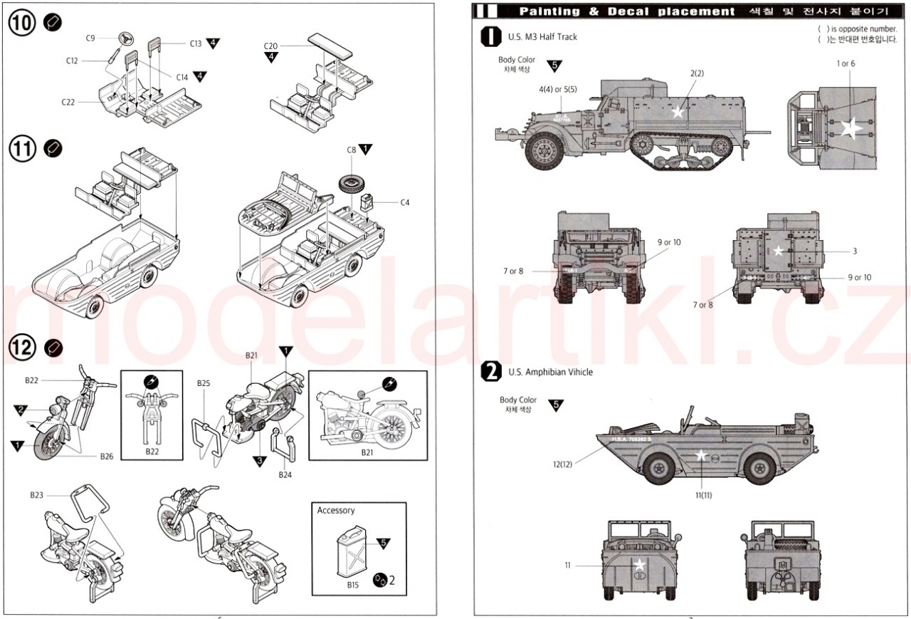 1:72 plastikový model U.S. transportéru, obojživelného auta a motorky z 2.sv.války. | |