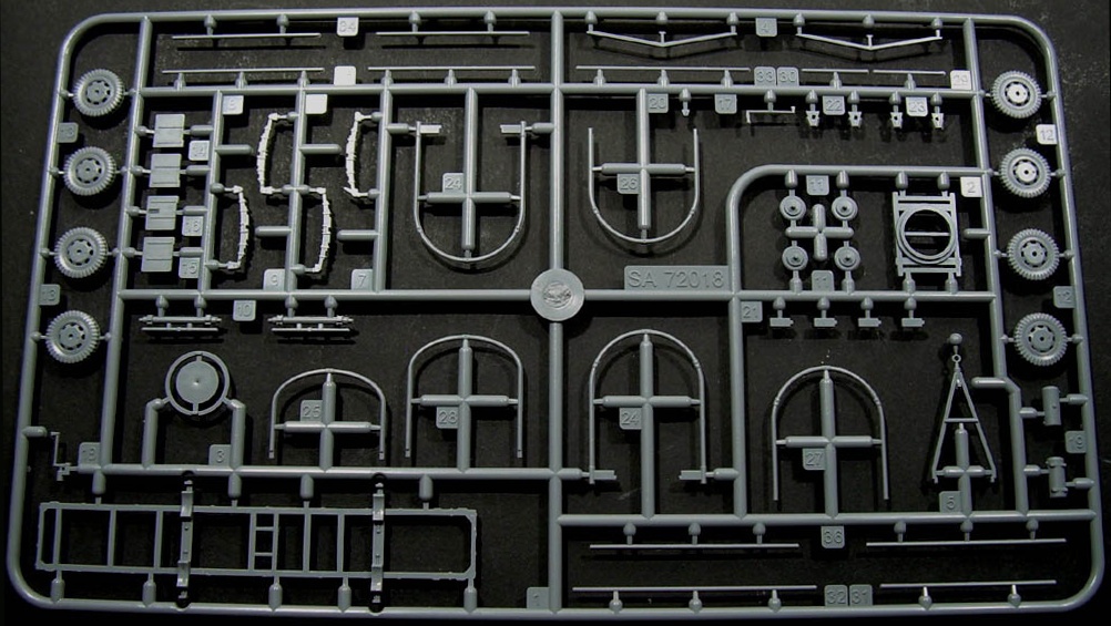 Stavebnice obsahuje plastové výlisky a obrázkový stavební návod. Neobsahuje lepidlo ani barvy. Sestavuje se lepením. Doporučený věk: 14+.