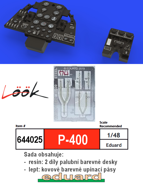 1:48 doplňková sada (přístrojová deska a upínací pásy) pro model firmy Eduard. | |