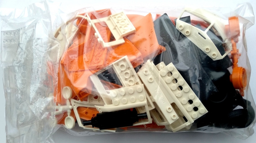 Balení obsahuje plastové probarvené zacvakávací díly, samolepící předřezané nálepky a stavební návod.