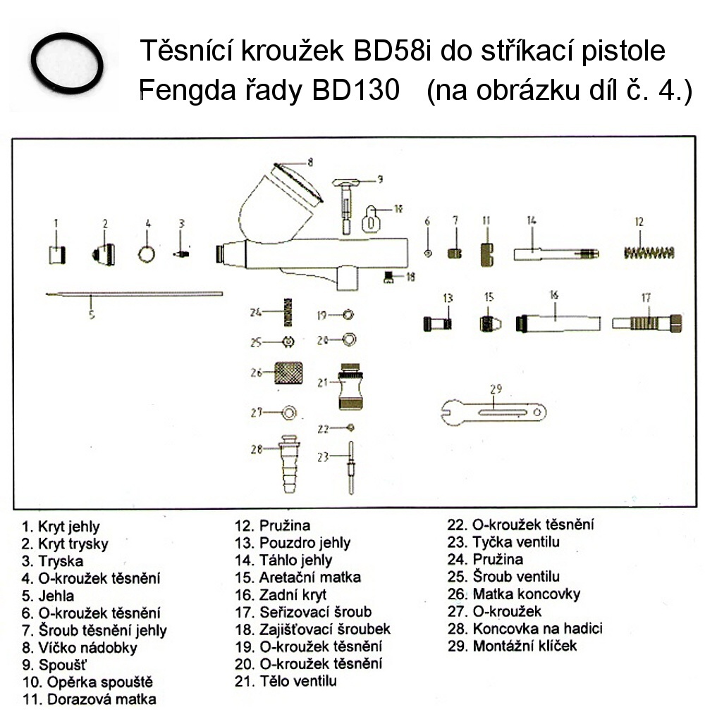 Těsnící O-kroužek 7x0,5 do stříkací pistole Fengda BD-130 a BD-180. | |