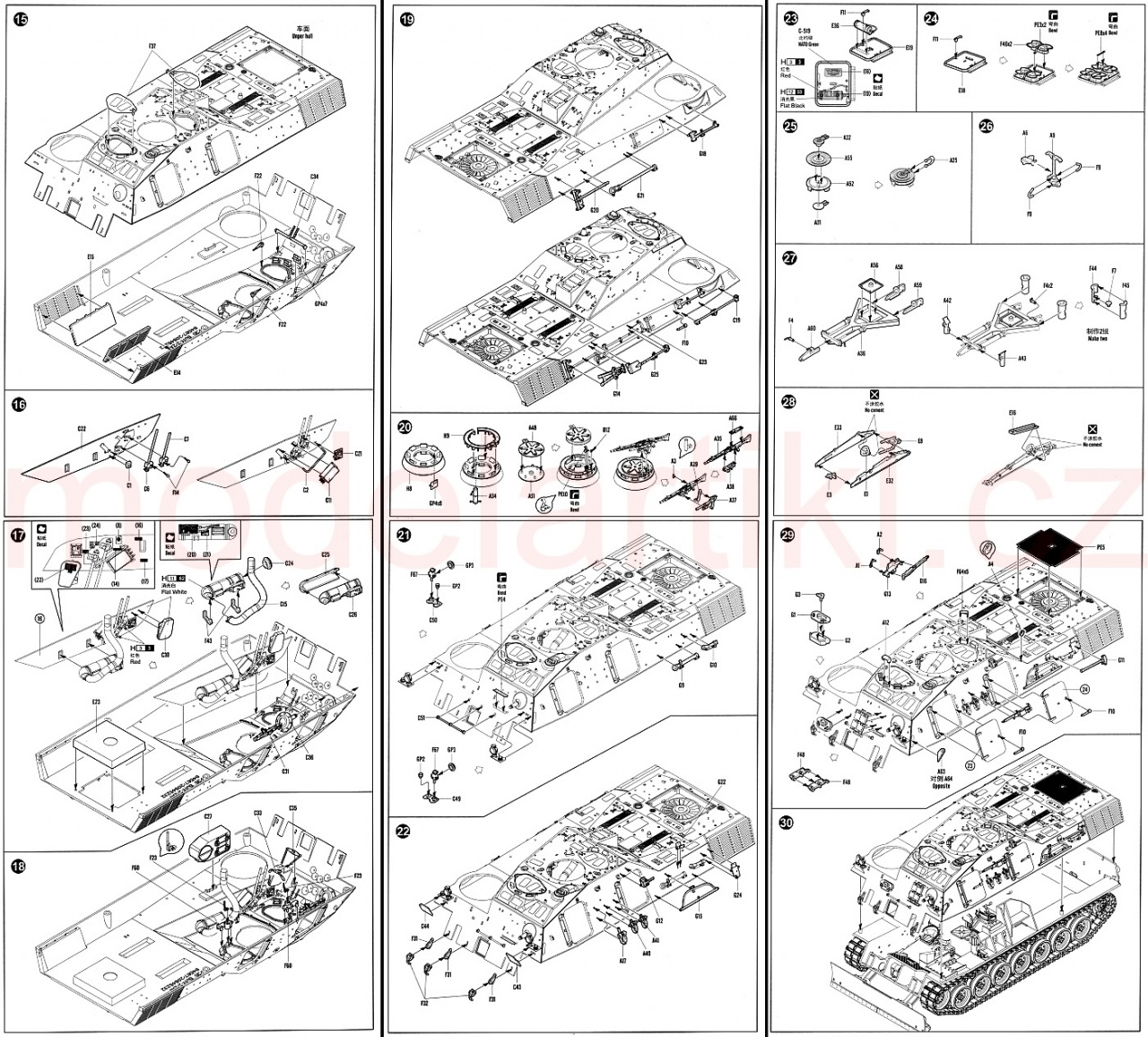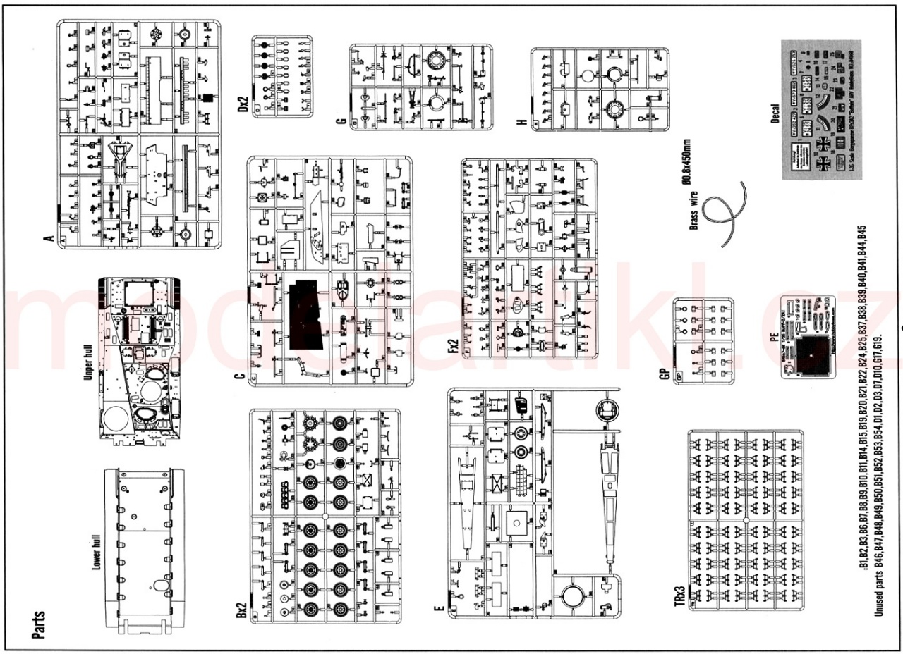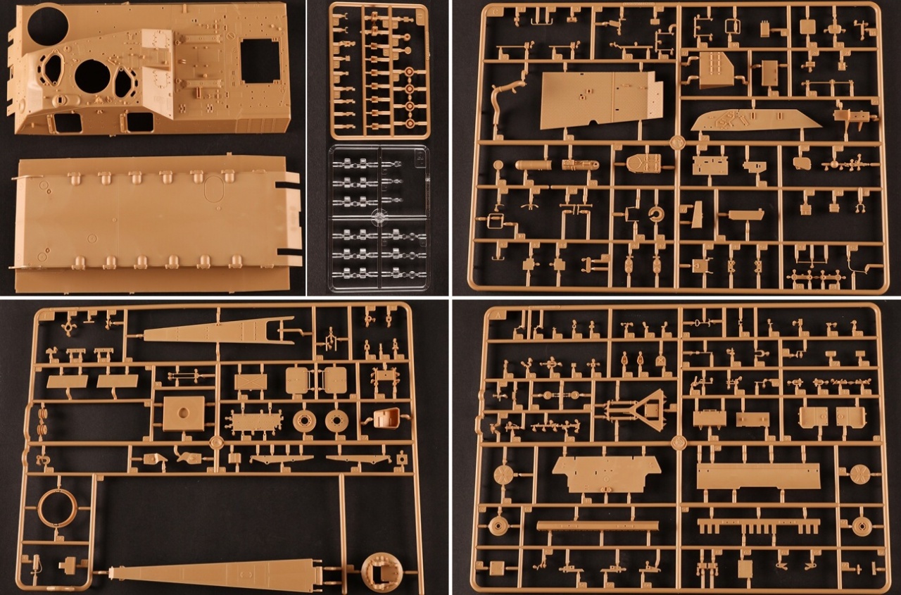 Stavebnice obsahuje plastové výlisky, leptané kovové díly, obtisky a obrázkový stavební návod. Neobsahuje lepidlo ani barvy. Sestavuje se lepením. Doporučený věk: 14+