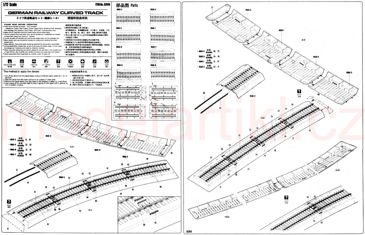 Stavebnice obsahuje plastové výlisky, obtisky a obrázkový stavební návod. Neobsahuje lepidlo ani barvy. Sestavuje se lepením. Doporučený věk: 14+.