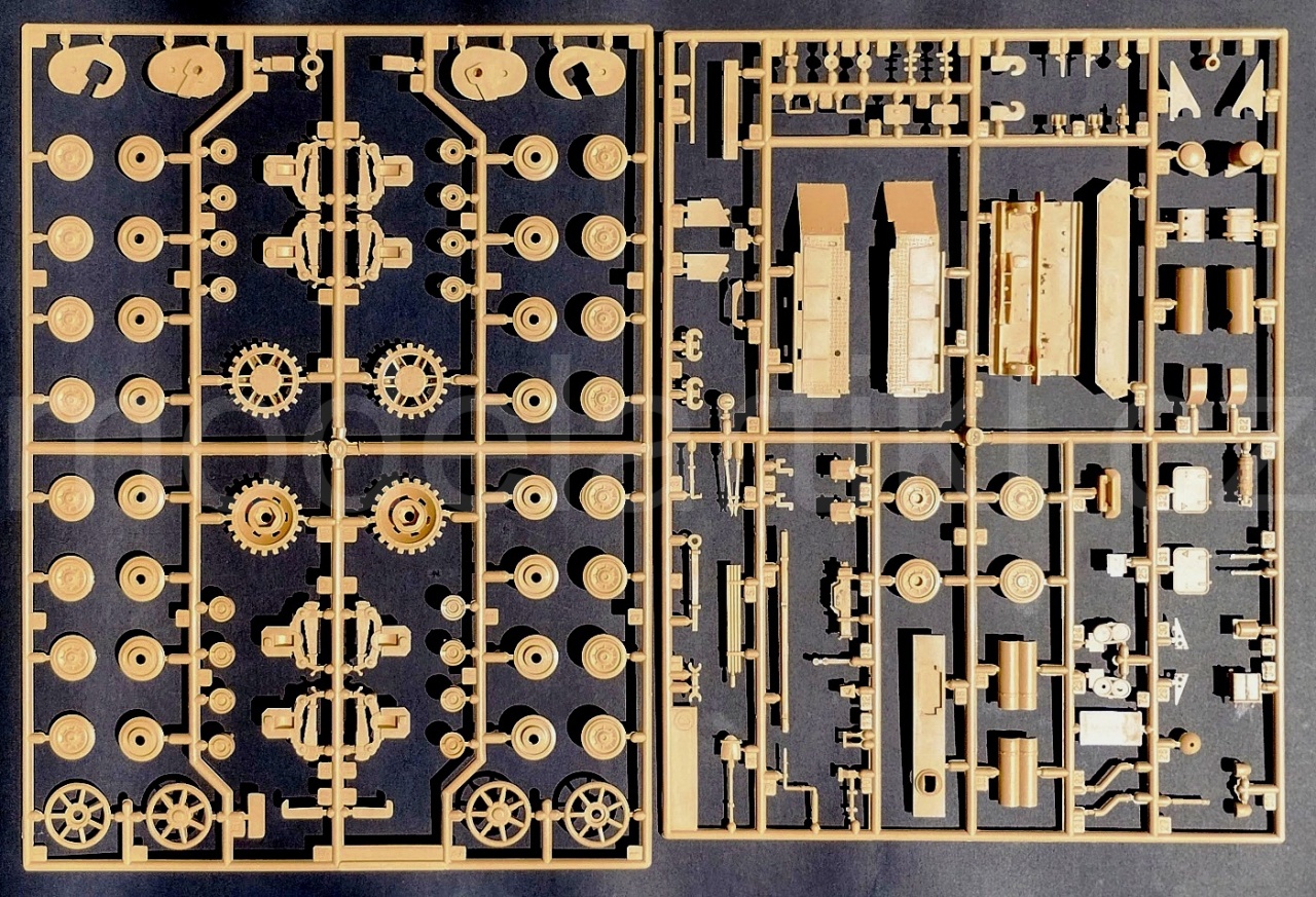 Stavebnice obsahuje plastové výlisky, pryžové pásy, obtisky a obrázkový stavební návod. Neobsahuje lepidlo ani barvy. Sestavuje se lepením. Doporučený věk: 14+.