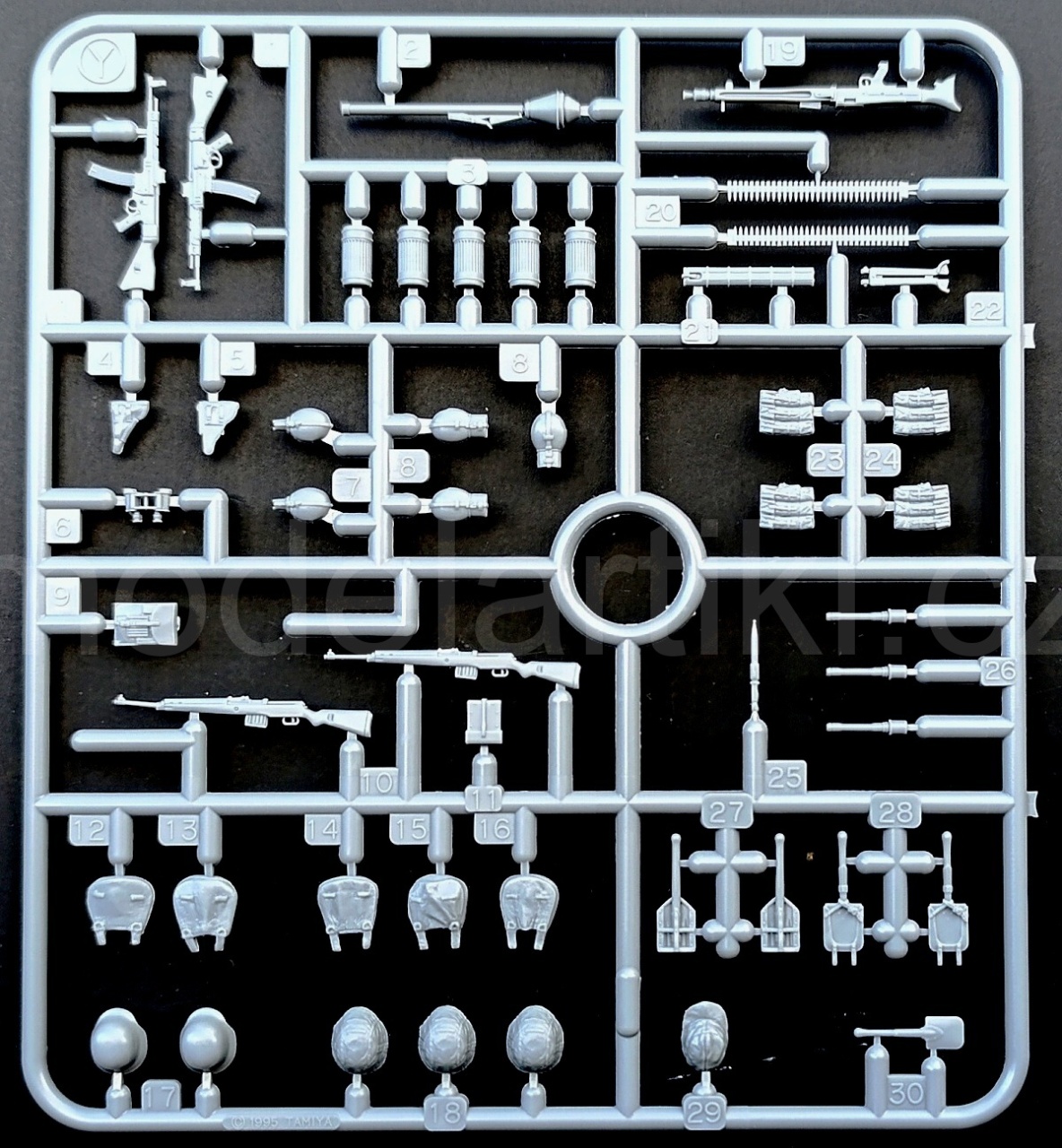 Stavebnice obsahuje plastové výlisky a obrázkový stavební návod. Neobsahuje lepidlo ani barvy. Sestavuje se lepením. Doporučený věk: 14+.