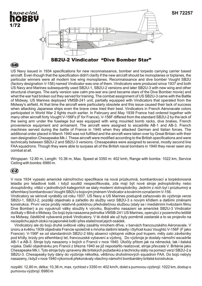 SB2U-2 Vindicator (Dive Bomber Star), 1:72, 012/SH72257